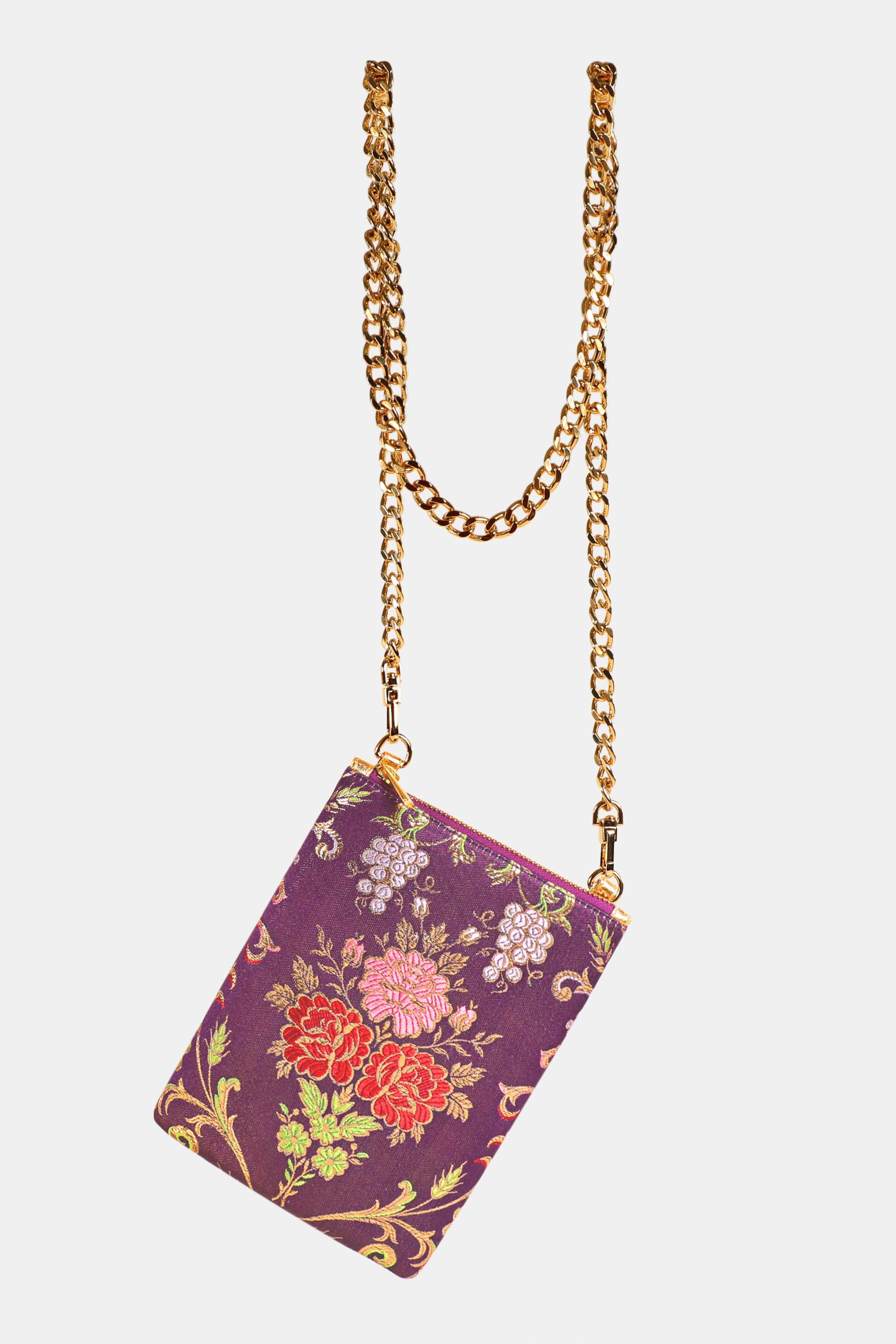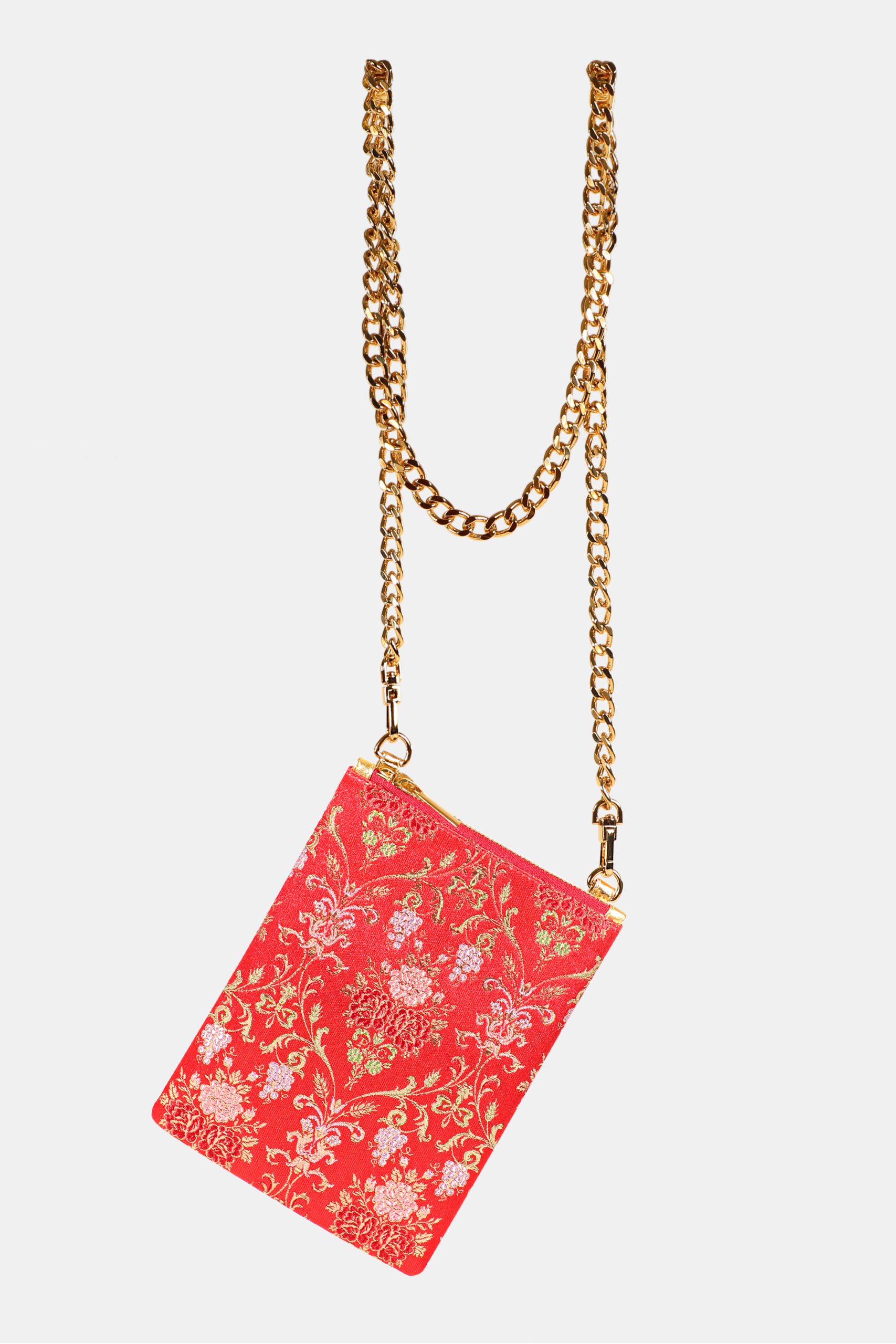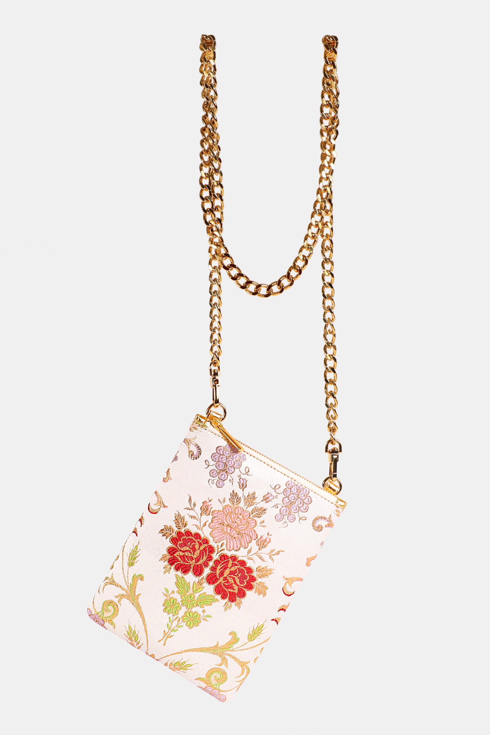 Realizzata in Lampasso PitG Filo Oro (Disegno Small), questa borsa esprime tutta la bellezza della tradizione tessile italiana, con un motivo elegante e dettagli preziosi. La fodera in raso materico colore oro aggiunge un tocco di lusso interno, garantendo morbidezza e raffinatezza.
